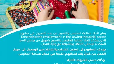 تعلن وزارة العمل عن بدء التسجيل لمشروع تمكين العمالة في قطاع صناعة الملابس الذي ينفذ بالشراكة مع اتحاد صناعة الملابس…