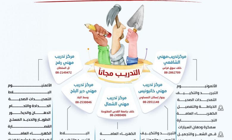تعلن وزارة العمل – غزة _ الإدارة العامة للتدريب المهني.