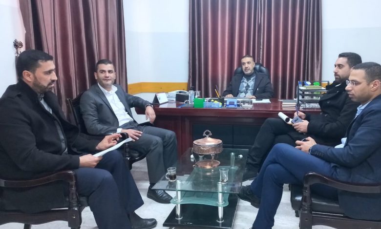 اجتمع مدير عام التفتيش وحماية العمل م. طلعت أبو معيلق ومدير دائرة السلامة والصحة المهنية م. حسام دخان اليوم الأربعاء 23/فبراير/2022م، مع فريق من الاتحاد العام للمقاولين ممثلاً بـ أ. محمد الرفاتي، م. محمد الغصين، م. أحمد أبو عساكر.