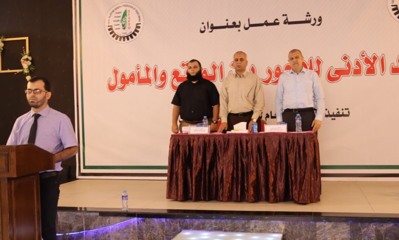 شاركت وزارة العمل، ممثلة برئيس وحدة علاقات العمل د. شادي حلس، يوم السبت 17/9/2022، في ورشة عمل نظمها الاتحاد العام لنقابات عمال فلسطين “بعنوان الحد الأدنى للأجور في قطاع غزة”.