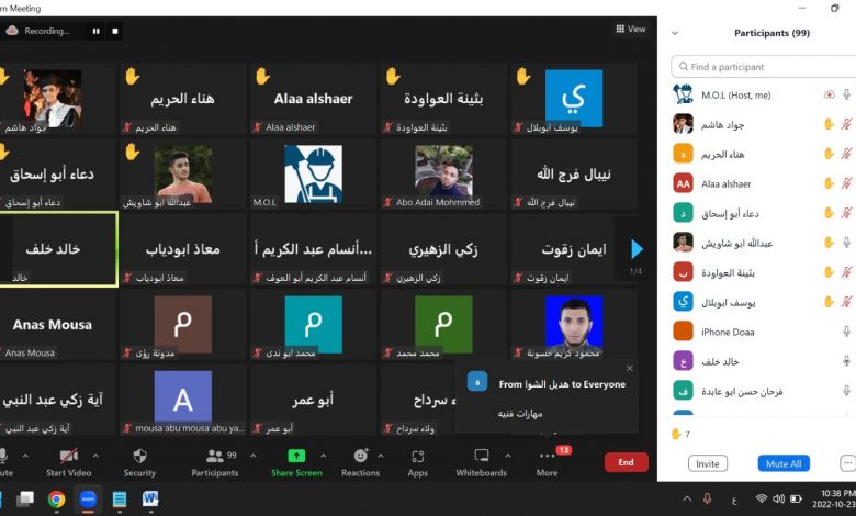 نظمت الإدارة العامة لخدمات التشغيل في وزارة العمل، عبر منصة الزوم، يوم الأحد 23/10/2022، لقاءً تدريبيا للمرشحين للعمل في برنامج صمود 2.