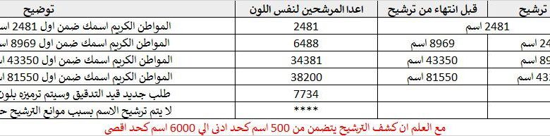 وأشارت وزارة العمل إلى تغير ألوان غالبية الأسماء وتقدمها في الترتيب بعد الترشيح الأخير، كما هو موضح بالجدول المرفق.