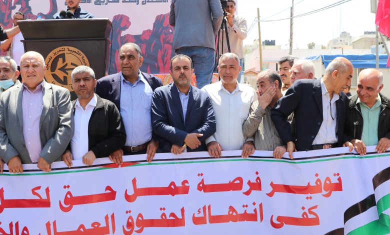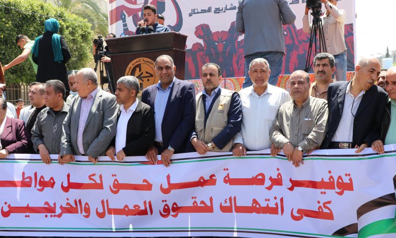 ورفع المشاركون في الوقفة عدة شعارات منها، ” توفير فرصة عمل حق لكل مواطن، كفى انتهاك لحقوق العمال والخريجين، معاً لتحقيق العدالة الاجتماعية والاقتصادية والقانونية لعاملاتنا وعمالنا، عاش الأول من أيار”.