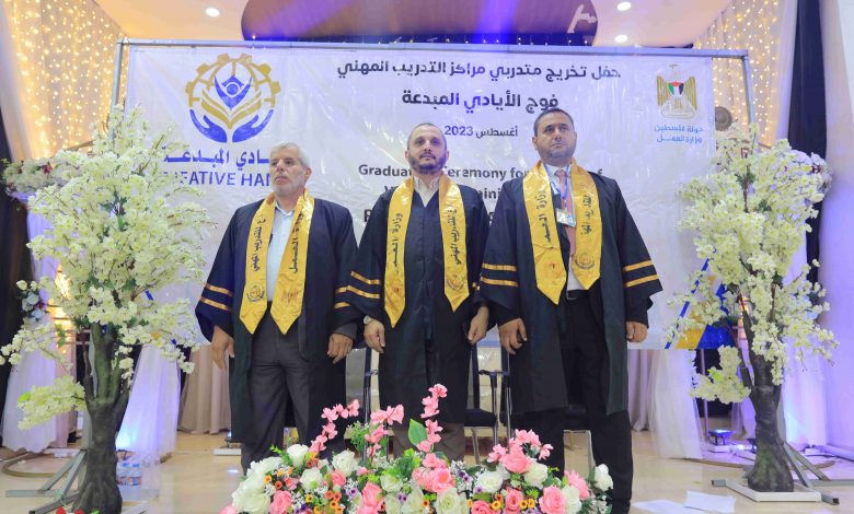 ونظمت وزارة العمل الاحتفال الثالث لخريج العام التدريبي 2022/2023، والمتمثل بتخريج متدربي ومتدربات مركز تدريب مهني خانيونس، بحضور وكيل وزارة العمل م. إيهاب الغصين، ومدير عام التدريب المهني أ. عبد الله كلاب، ومدير مركز تدريب مهني خانيونس م. حسن الهمص، ورؤساء الوحدات والدوائر في الوزارة، وممثلي عن المؤسسات الحكومية والمدنية، ووفد من الشرطة الفلسطينية، ووجهاء وأعيان محافظة خانيونس، وذوي المتدربين والمتدربات المحتفى بهم.